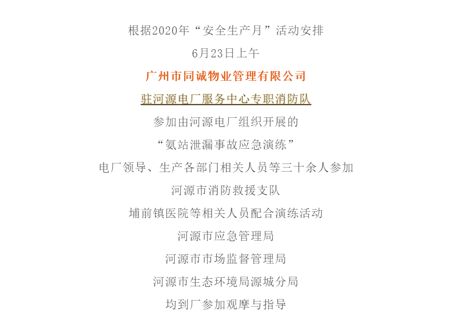 厲兵秣馬 以練備戰︱同誠物業駐河源電廠專職消防隊助力電廠開展氨站泄漏事故應急演練